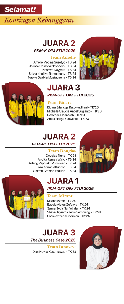 Apresiasi tertinggi diberikan kepada mereka yang berani mengambil kesempatan dan merubahnya menjadi pencapaian. IMTK mengapresiasi para kontingen yang telah berjuang mengharumkan nama lembaga, departemen, fakultas, hingga universitas.